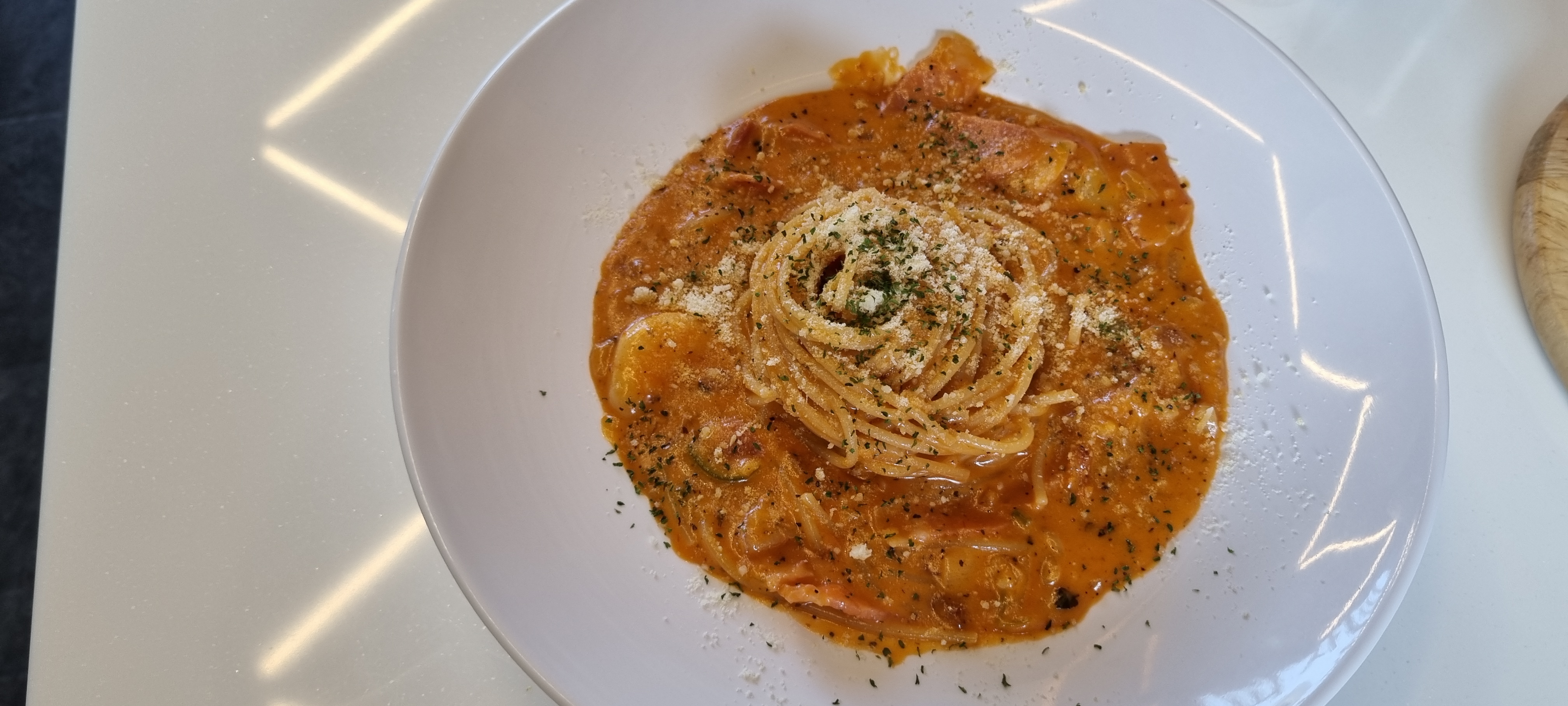 로제 파스타를 시켰는데 식전 빵이 나왔다.