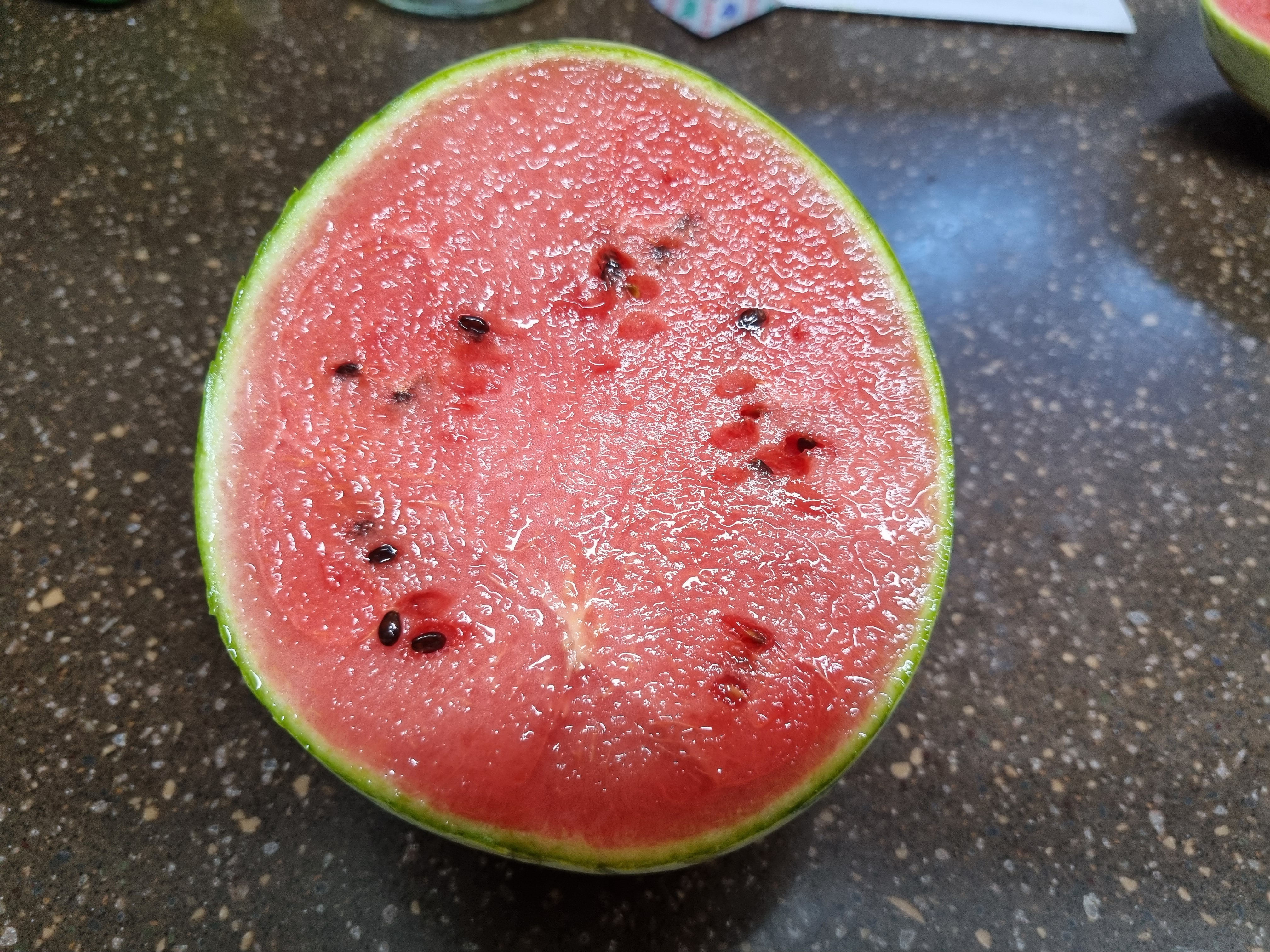혹시 복 수박인지 모르겠다.껍질이 얇아 사과 깍듯이 돌려 깍아야하고 상당히 달고 맛있다.