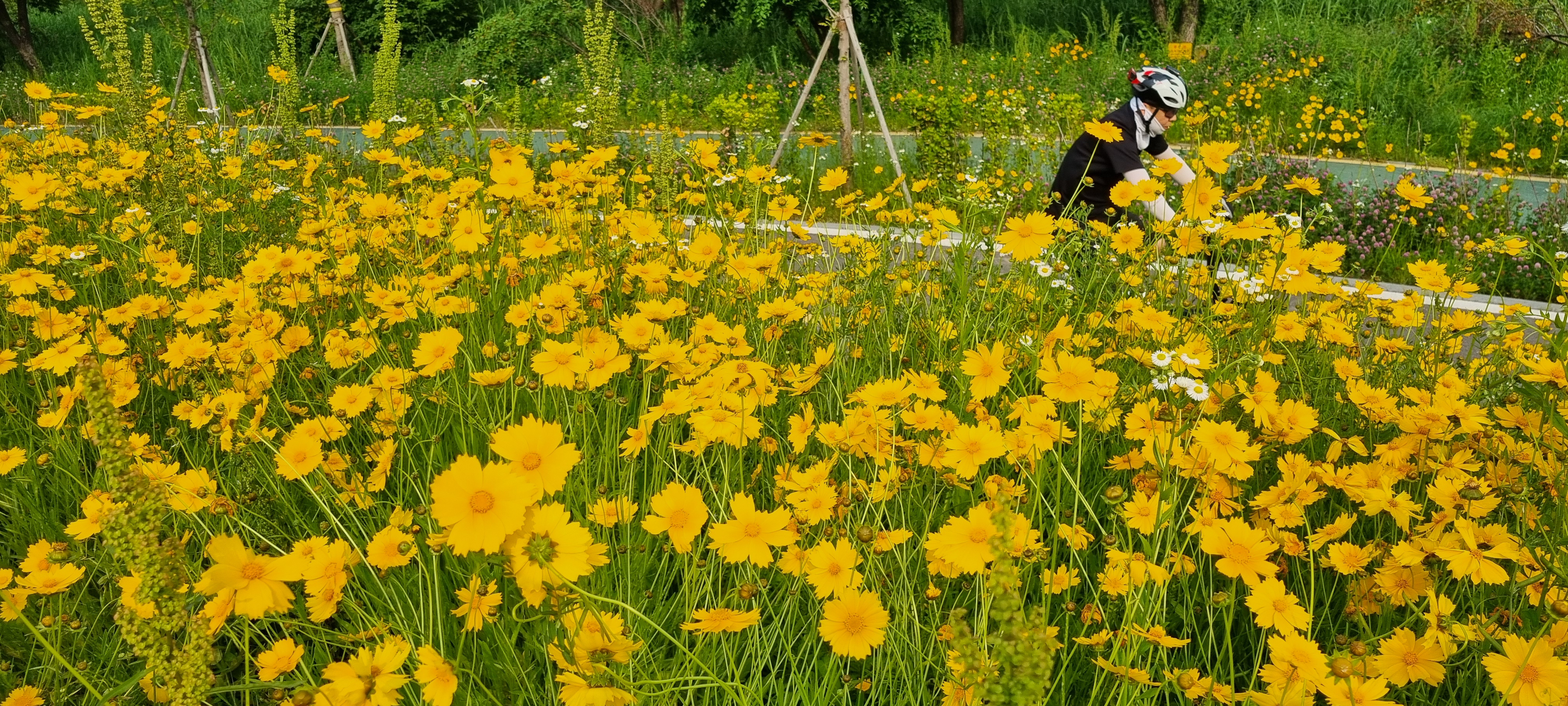 자전거 전용 도로옆 언덕에 금계국이 지천으로 피어
