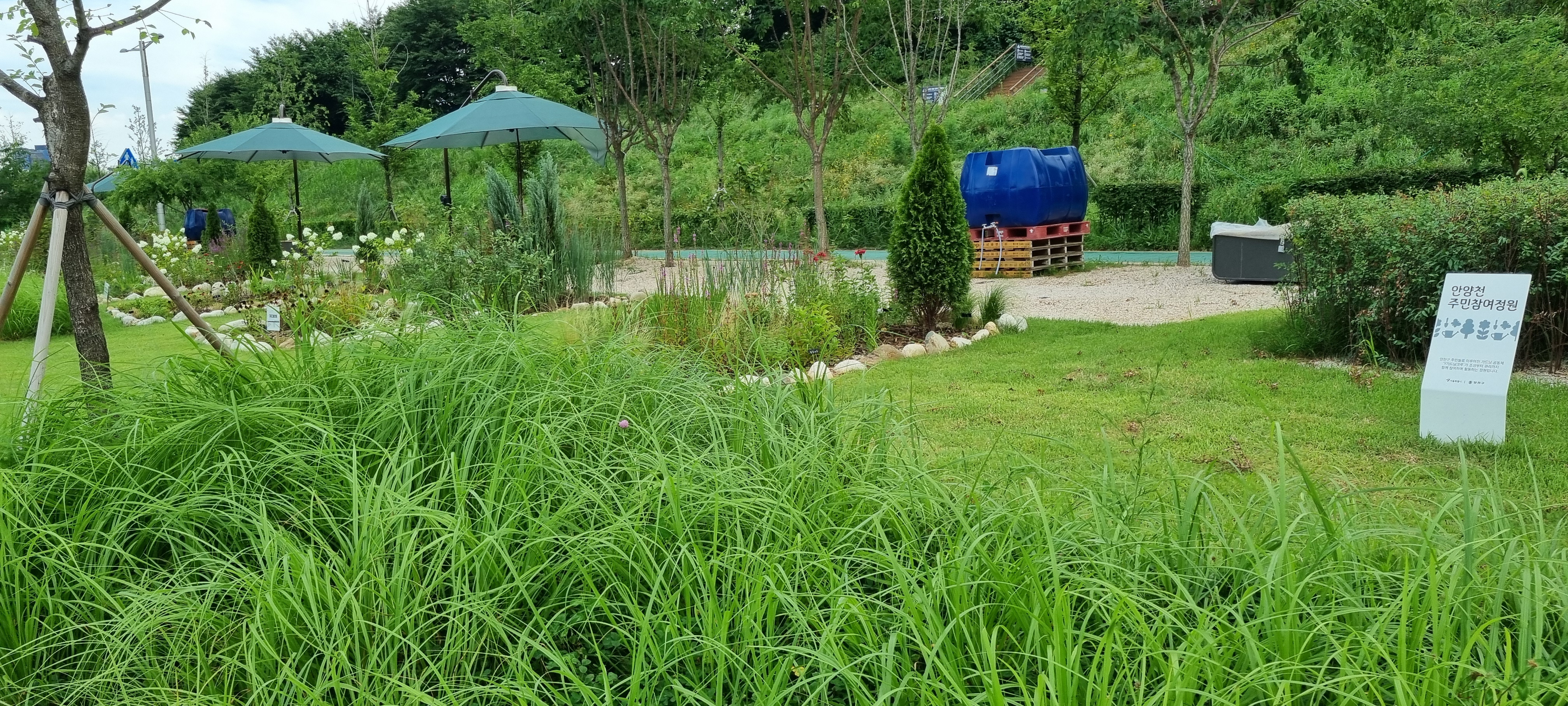 그늘막도 있고 물탱크도 있는데 물은 양천구 공원 관리과에서 물차로 싣고 와서