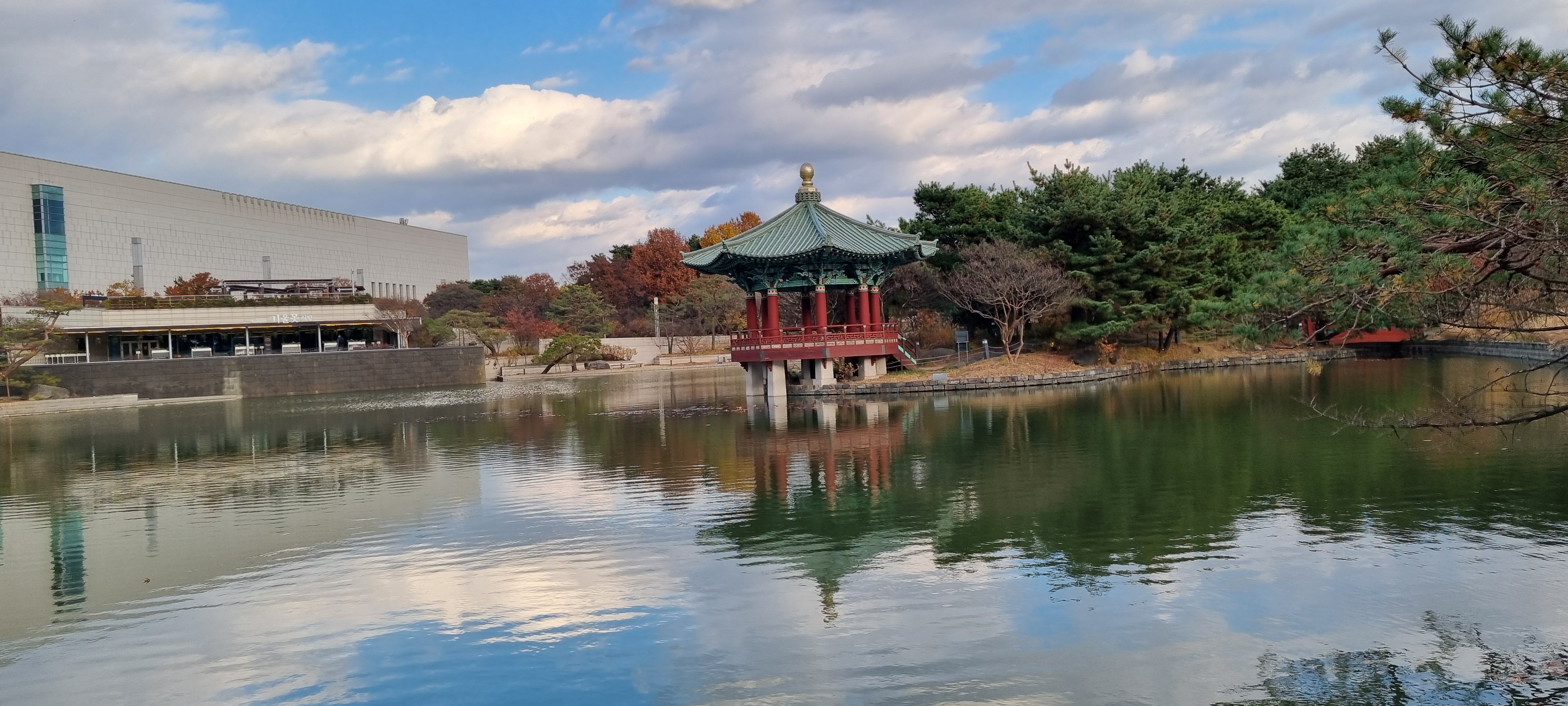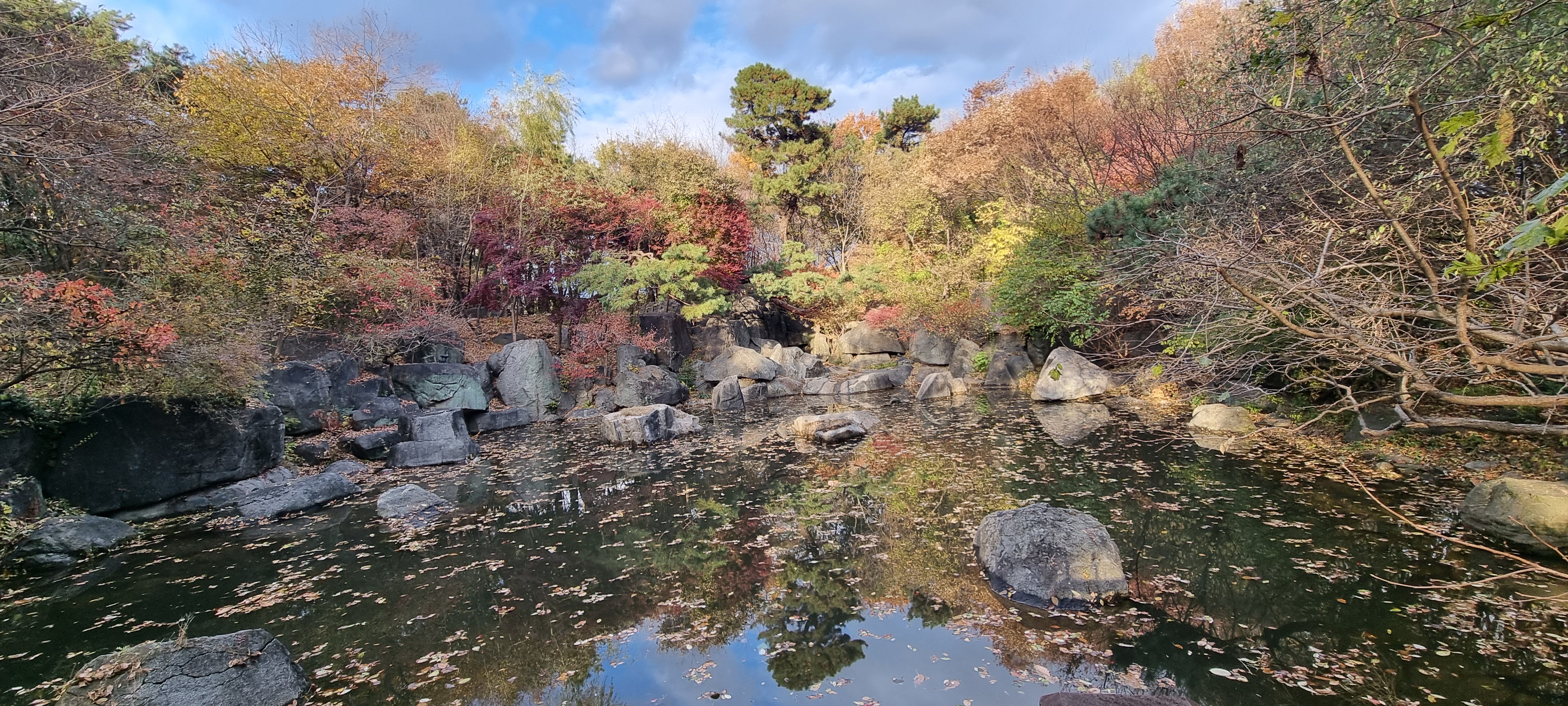 이때는 하늘이 맑아 연못에 비치는 하늘도 예쁘다.