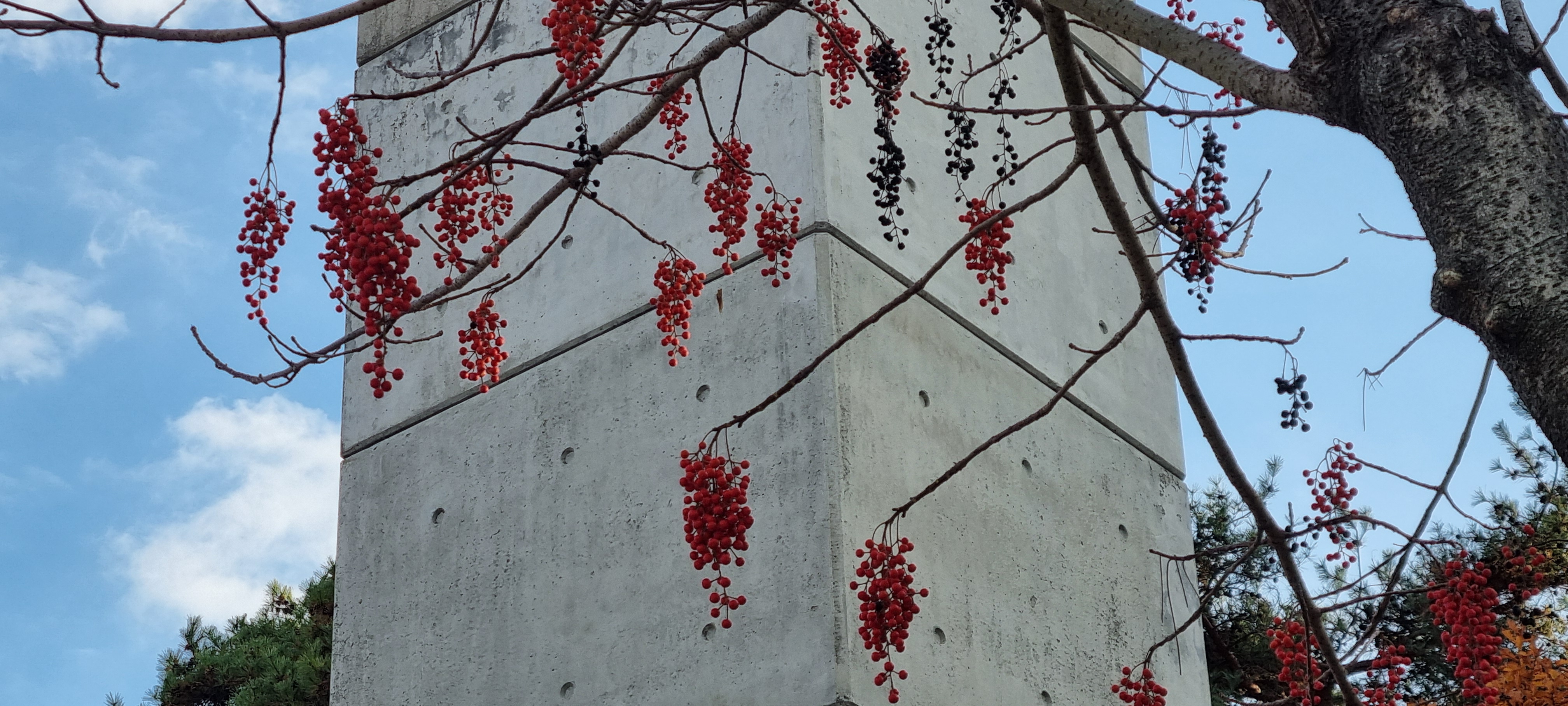 빨간 열매만 달려있는 모습이 눈에 띈다.