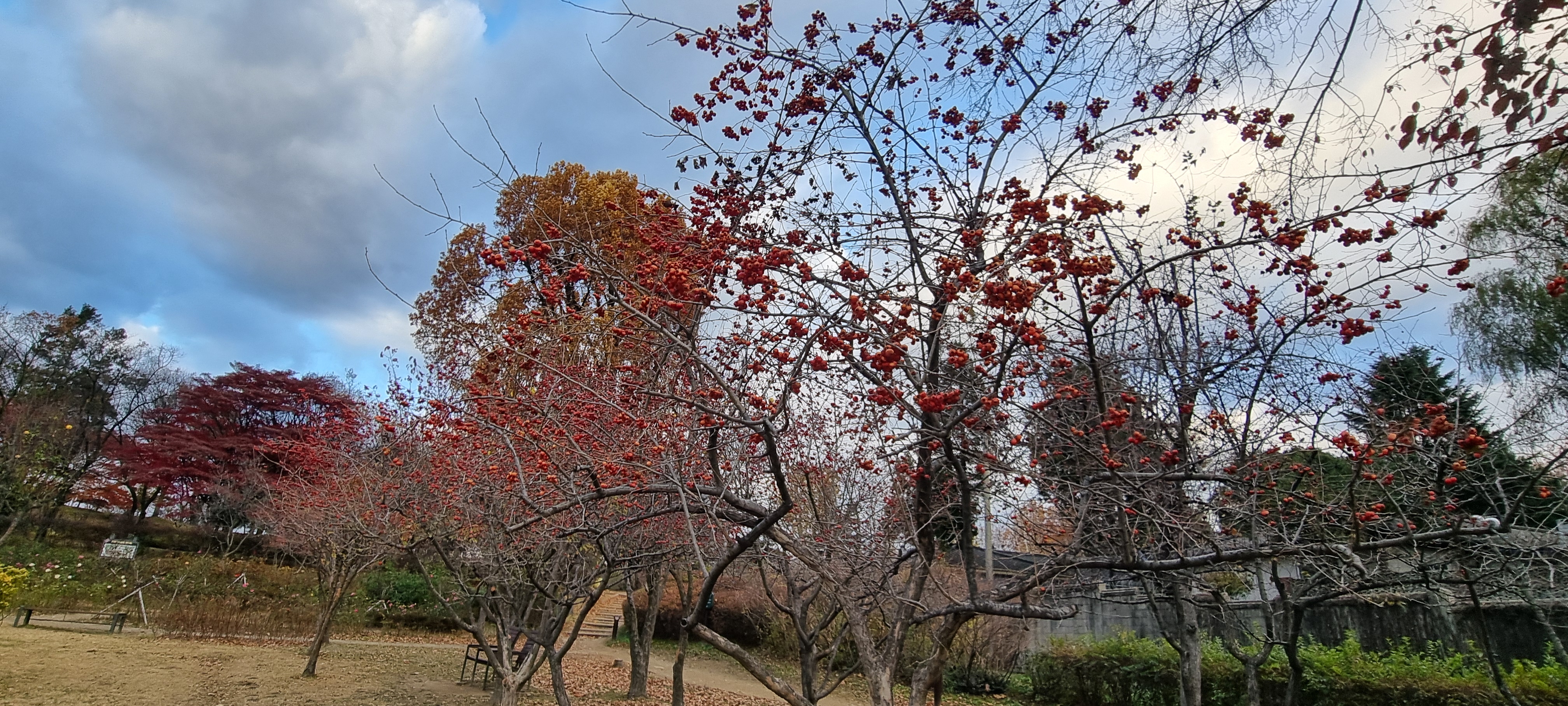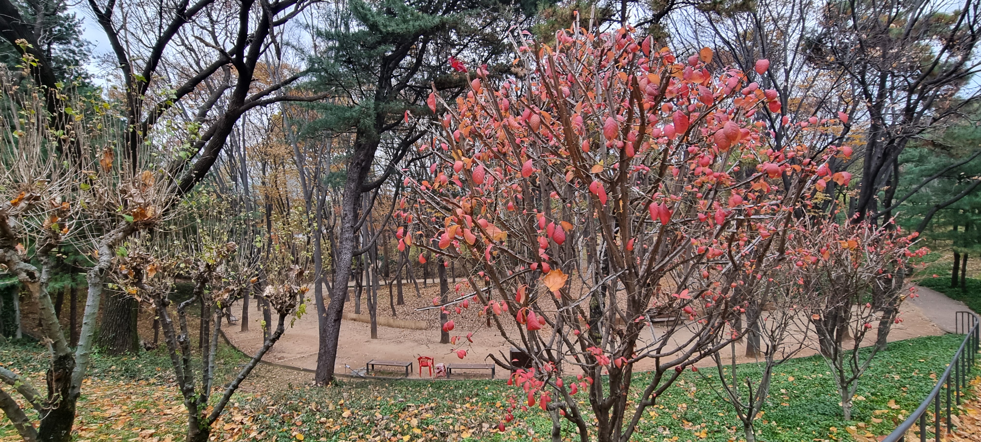 용산 가족 공원에 들어서니 키 큰 나무에 잎은 다 떨어지고