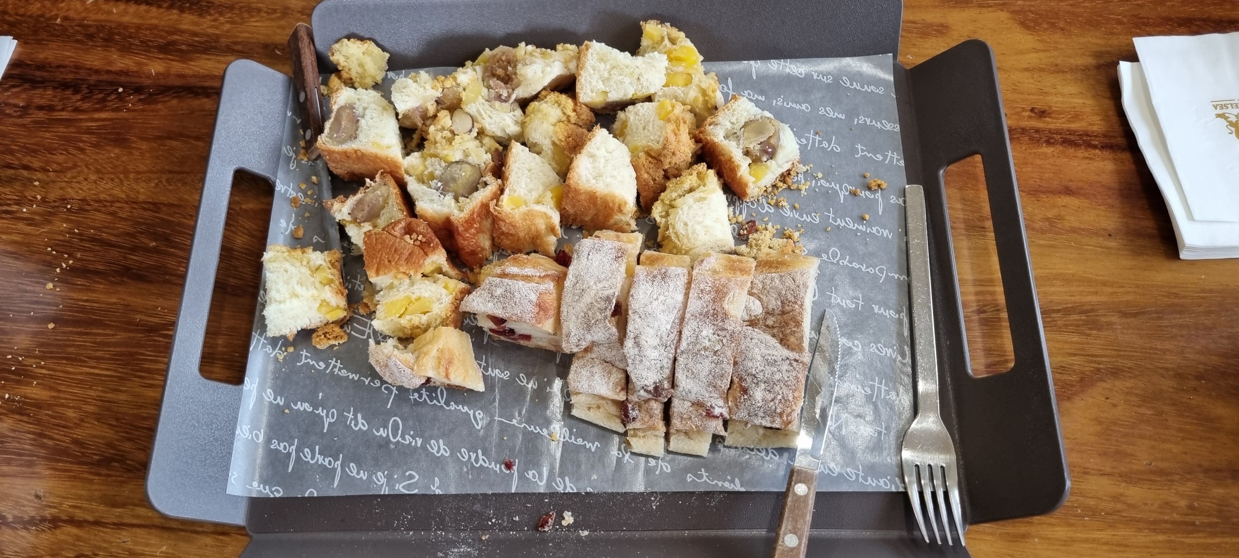 내가 사진을 찍고 합세하였더니 벌써 빵을 조각 내어놓았다며