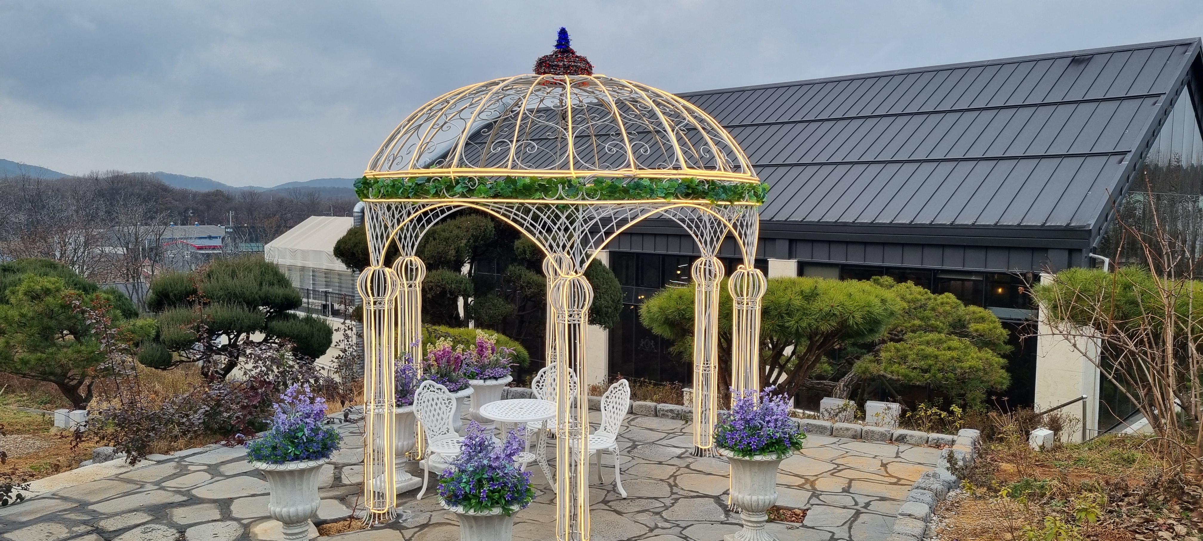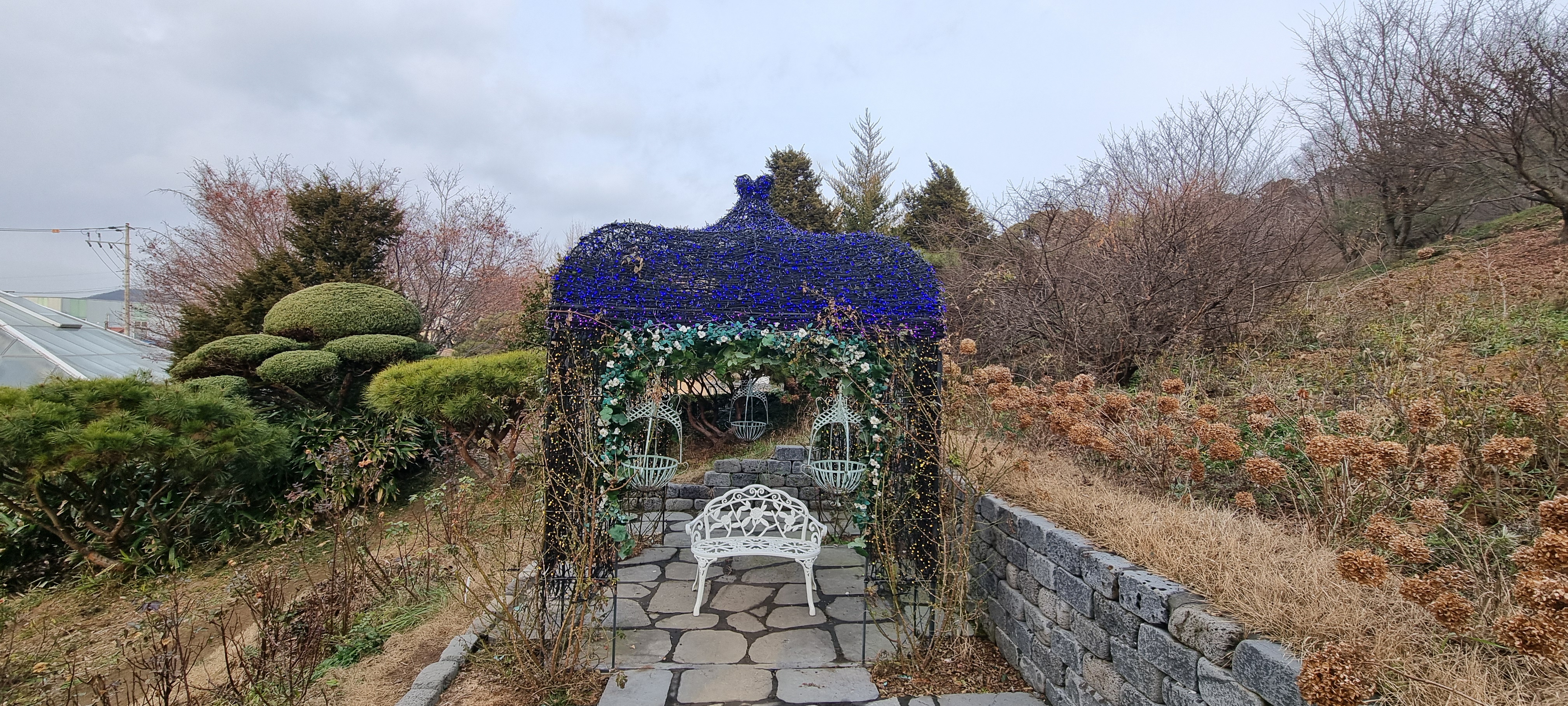 장미와 수국이 양옆으로 있어 꽃 필 때는 엄청 멋있겠다.