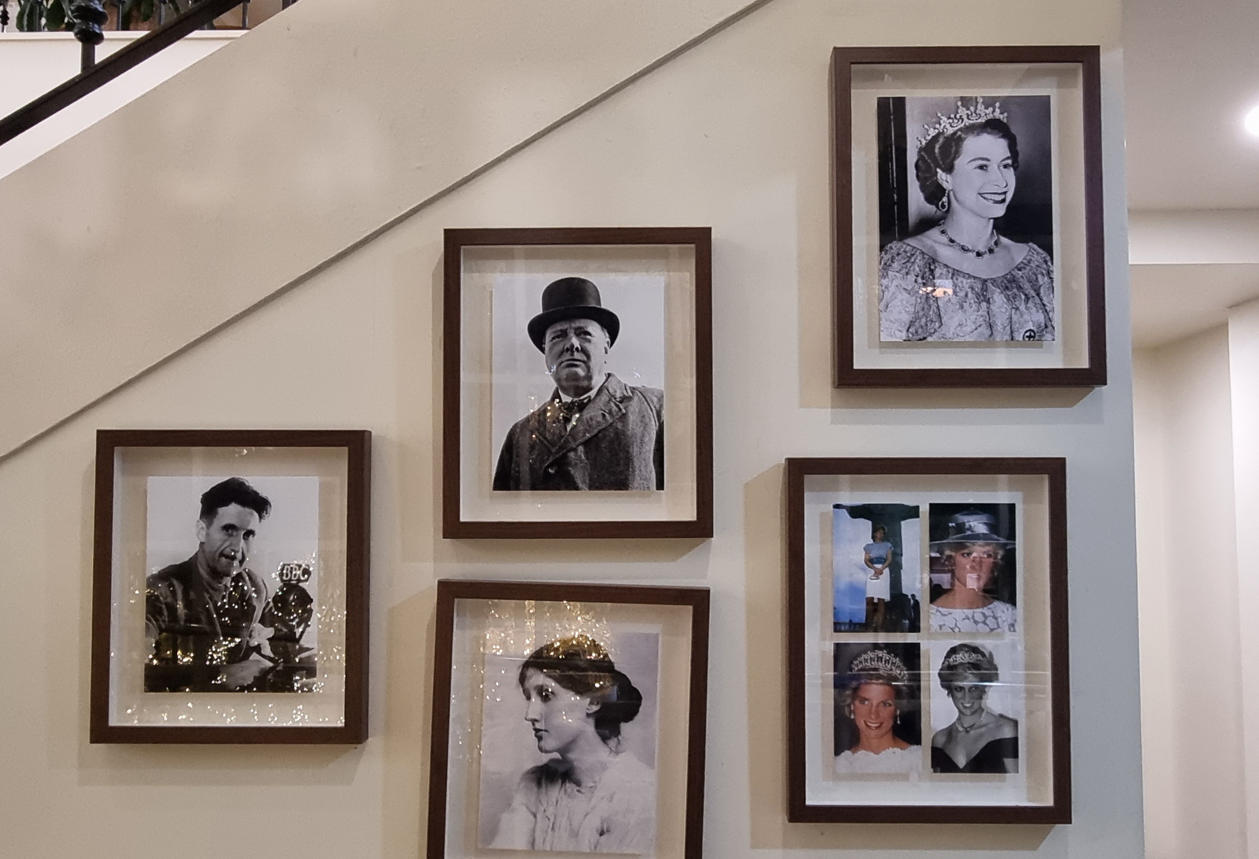 영국의 유명 연예인과 영화 한 장면 등이 걸려있다.