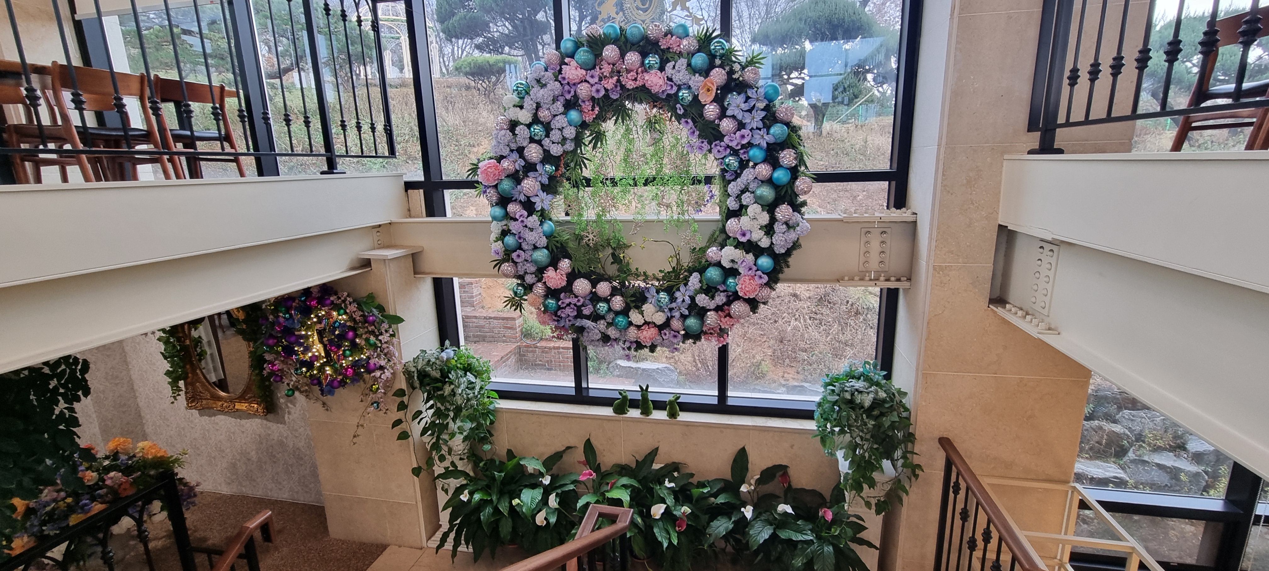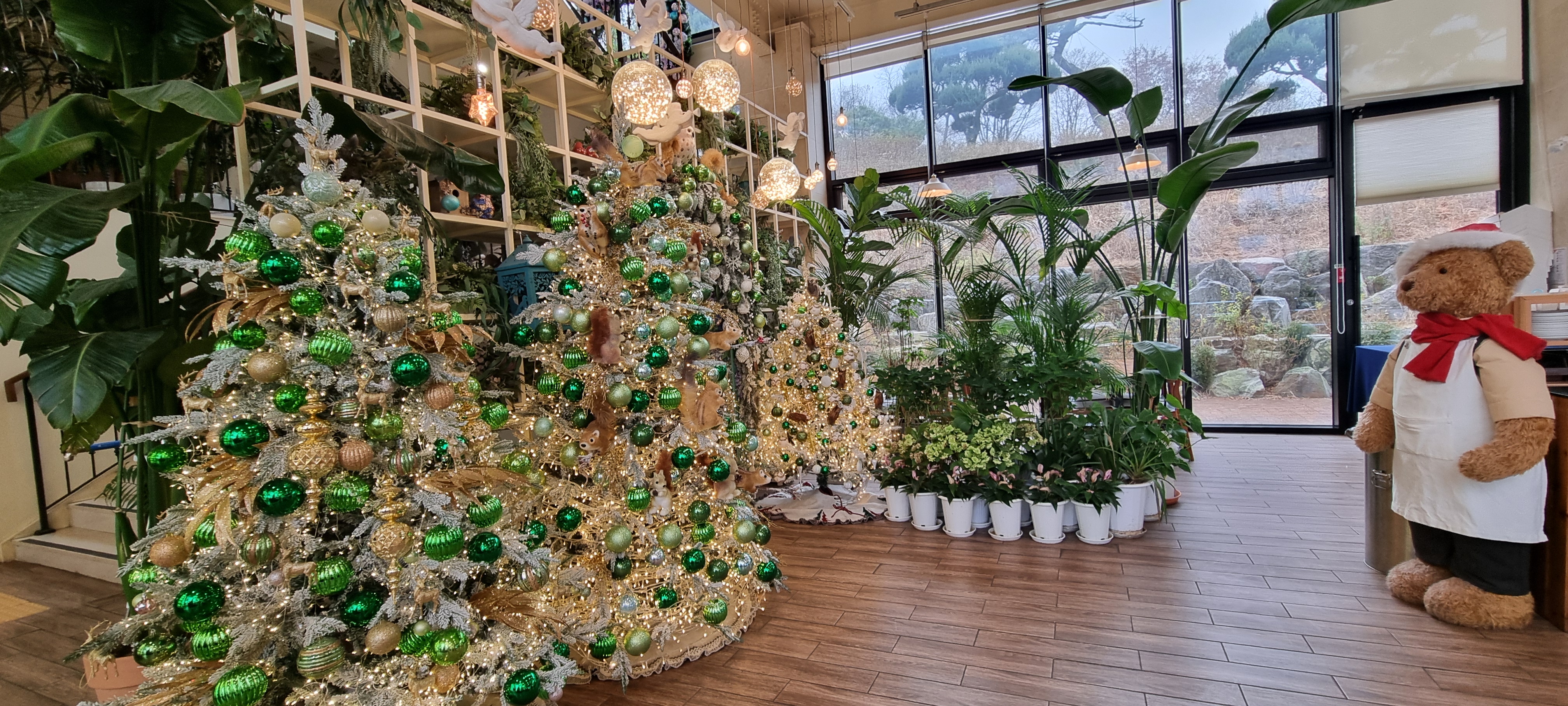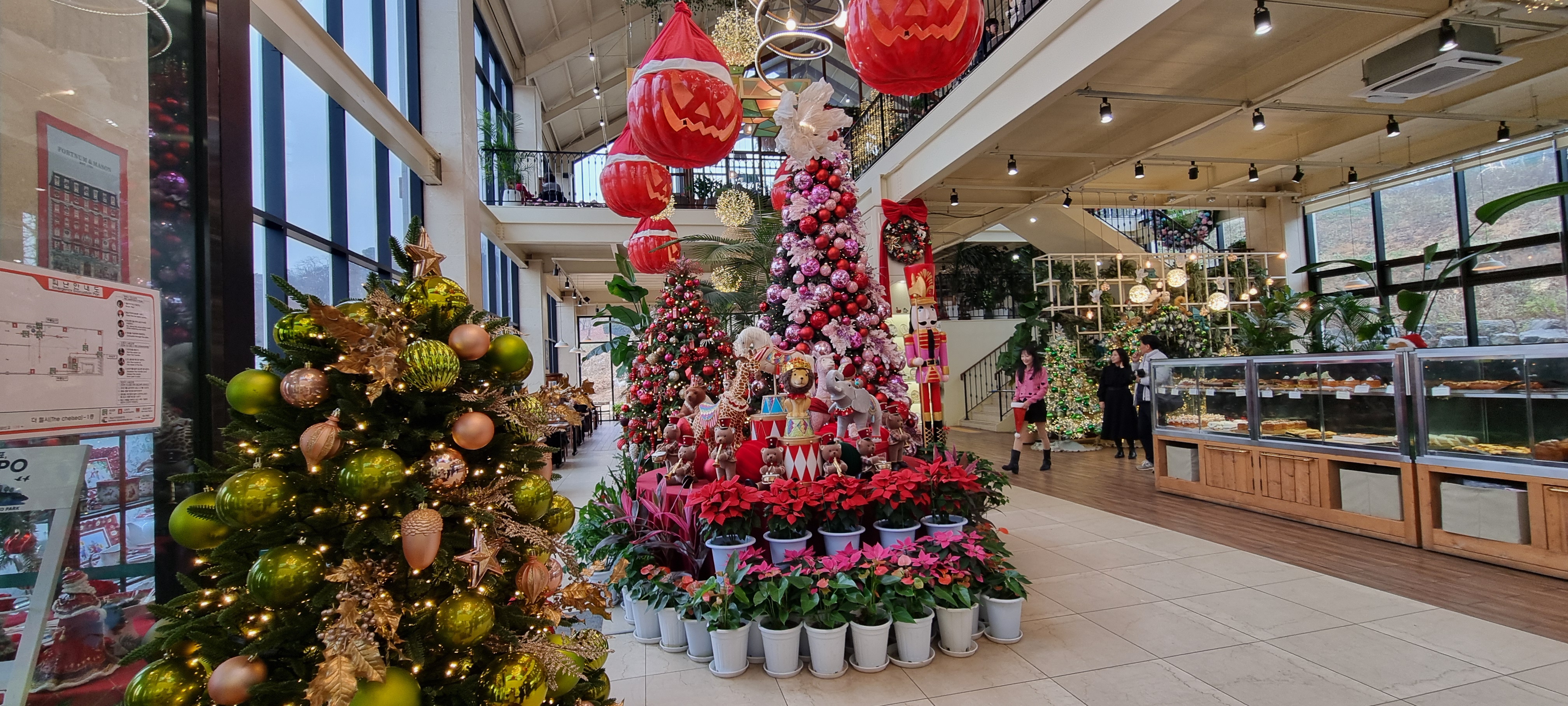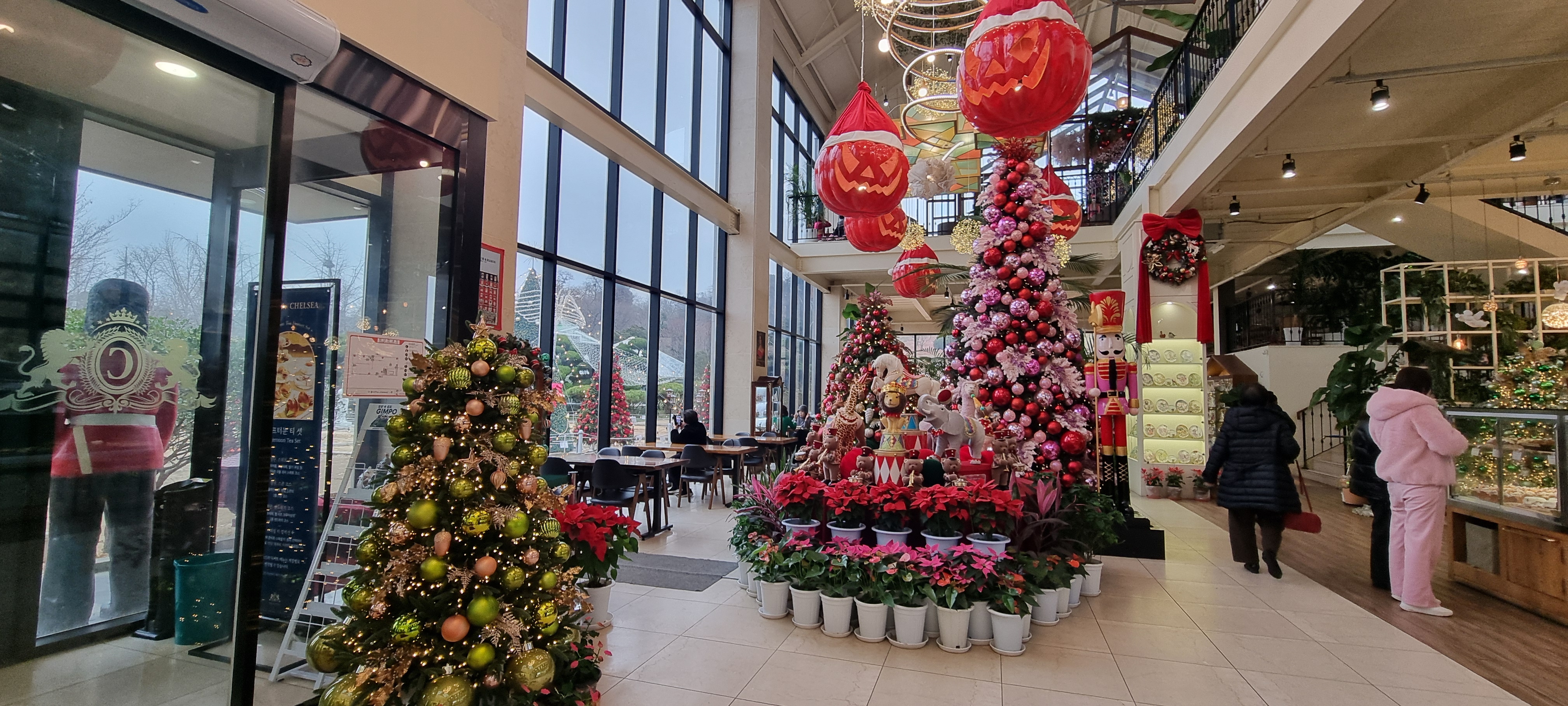 실내로 들어서니 바깥과는 달리 화려한 크리스마스트리와 포인세티아가
