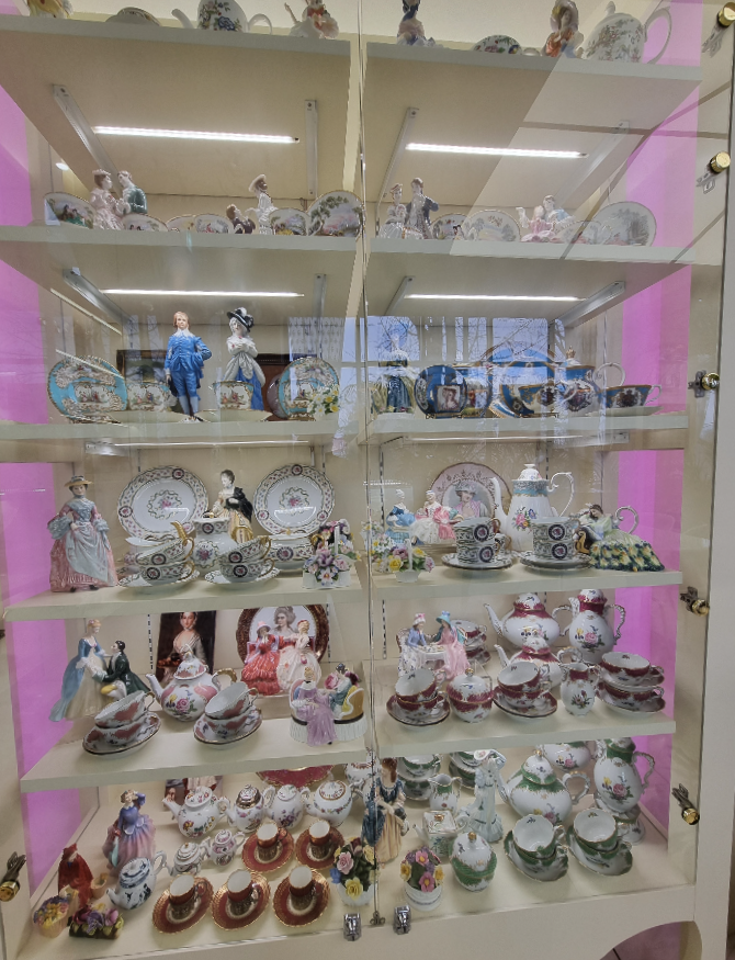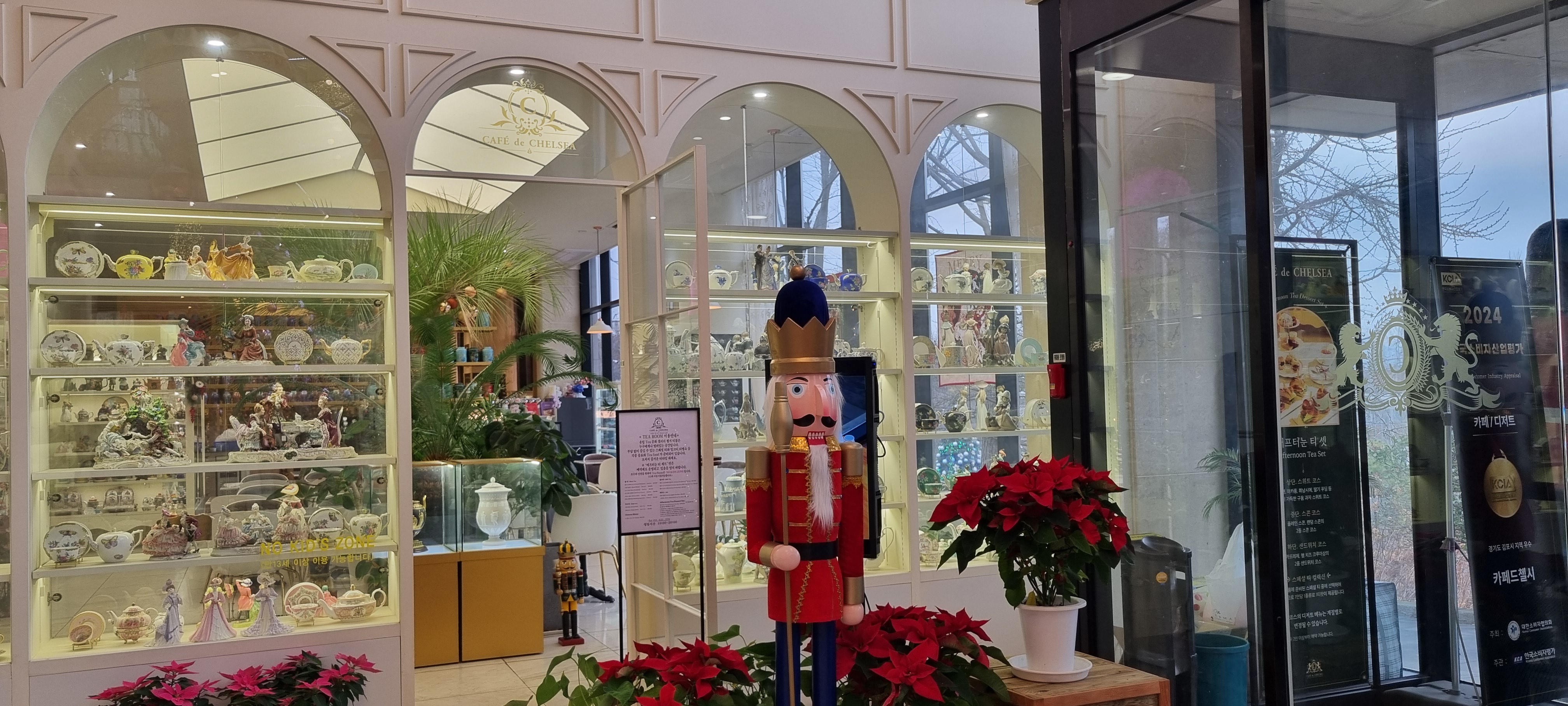 수집한 영국의 도자기와 컵등을 카페에 전시한 것이라고 한다.