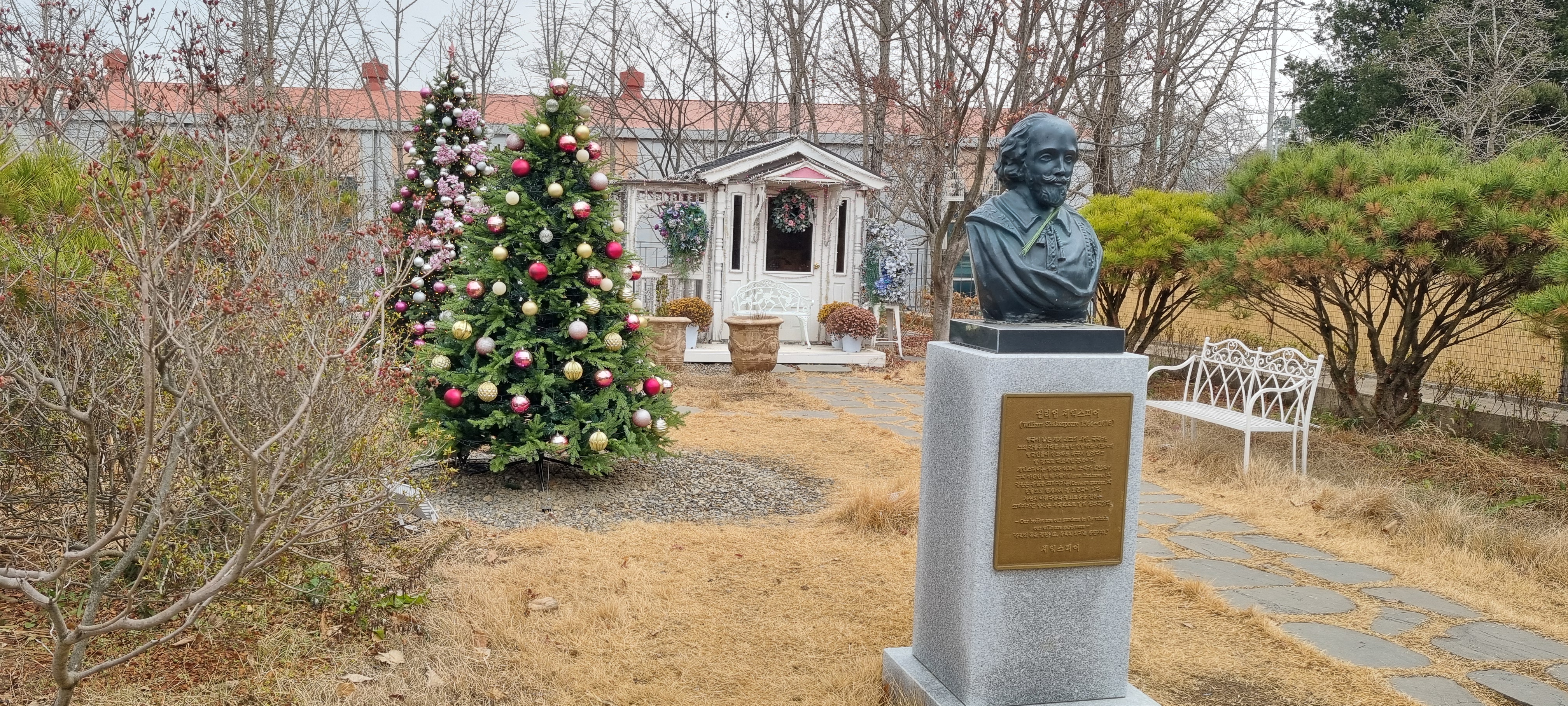 카페 입구에 있는 셰익스피어 흉상이 우리를 맞이한다.