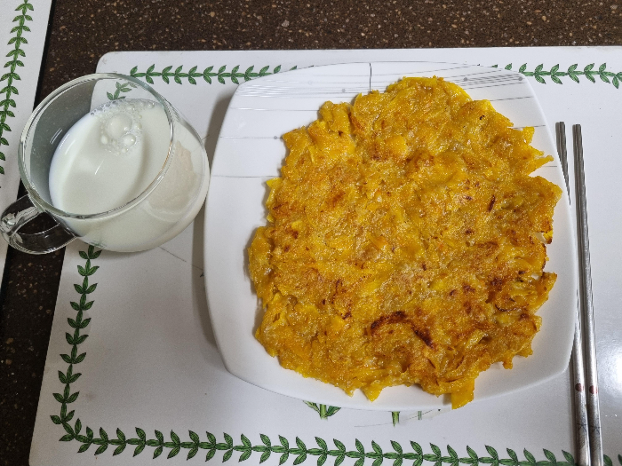 물기 꼭 짜서 전을 부치는 걸 봤다.