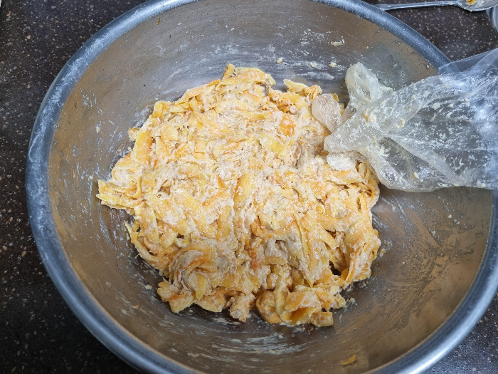 밀가루가 없어도 잘 붙을 줄 알았는데
