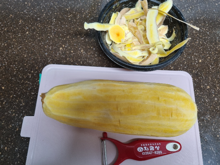 껍질을 감자 칼로 벗기는데 상당히 딱딱하고 여물다.