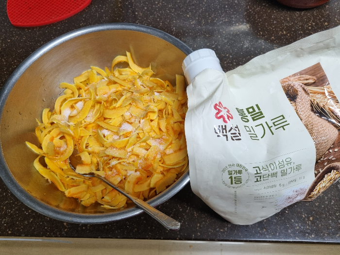 약간의 밀가루를 넣고 소금도 차 숟가락으로 하나 넣었다.