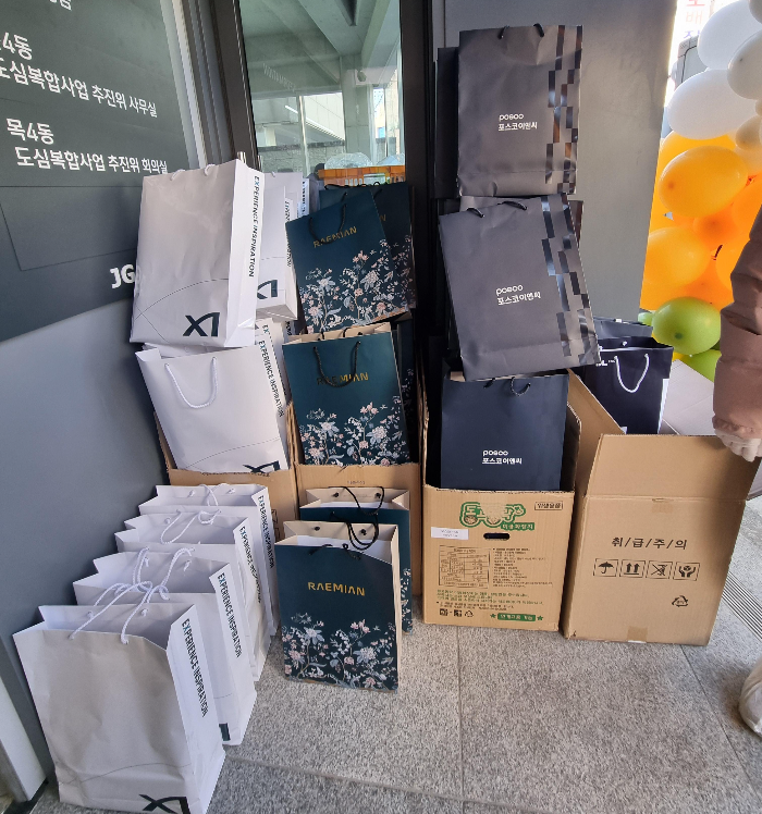 끝나고 밖으로 나오니 각 건설사 이름의 쇼핑백이 준비되어 있는데